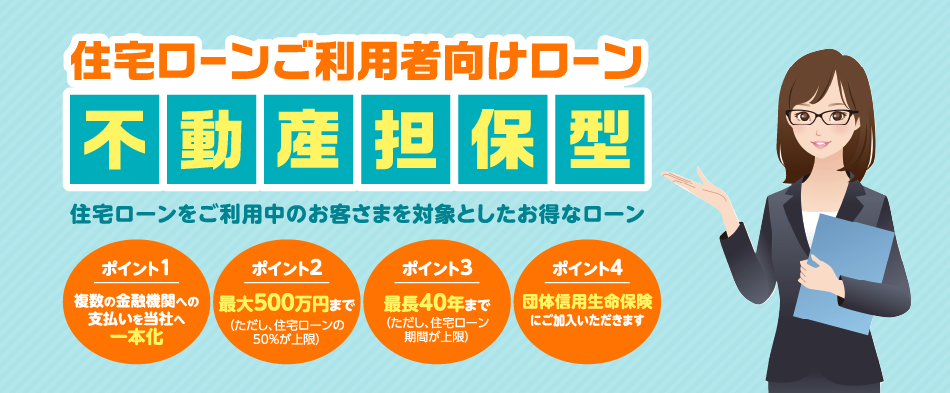 | 団体信用生命保険 | お借入れに際して、当社が契約している保険会社の団体信用生命保険(全疾病保障付団信、一般団信、ワイド団信)に加入していただきます。 ワイド団信の場合は適用金利に年0.50%の金利上乗せとなります。 |